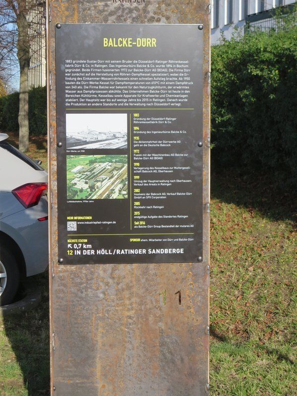 1883 gründete Gustav Dürr mit seinem Bruder die Düsseldorf-Ratinger Röhrenkesselfabrik Dürr & Co. in Ratingen. Das Ingenieurbüro Balcke & Co. wurde 1894 in Bochum gegründet. Beide Firmen fusionierten 1972 zur Balcke-Dürr AG (BDAG). Die Firma Dürr war zunächst auf die Herstellung von Röhren-Dampfkessel spezialisiert, wobei die Erfindung des Einkammer-Wasserrohrkessels einen schnellen Aufstieg brachte. Ab 1950 bauten die Dürr-Werke Kessel für Dampftemperaturen von 610º C mit einem Dampfdruck von 340 atü. Die Firma Balcke war bekannt für den Naturzugkühlturm, der erwärmtes Wasser aus Dampfprozessen abkühlte. Das Unternehmen Balcke-Dürr ist heute in den Bereichen Kühltürme, Kesselbau sowie Apparate für Kraftwerke und Chemieanlagen etabliert. Der Hauptsitz war bis auf wenige Jahre bis 2015 in Ratingen. Danach wurde die Produktion an andere Standorte und die Verwaltung nach Düsseldorf verlegt.