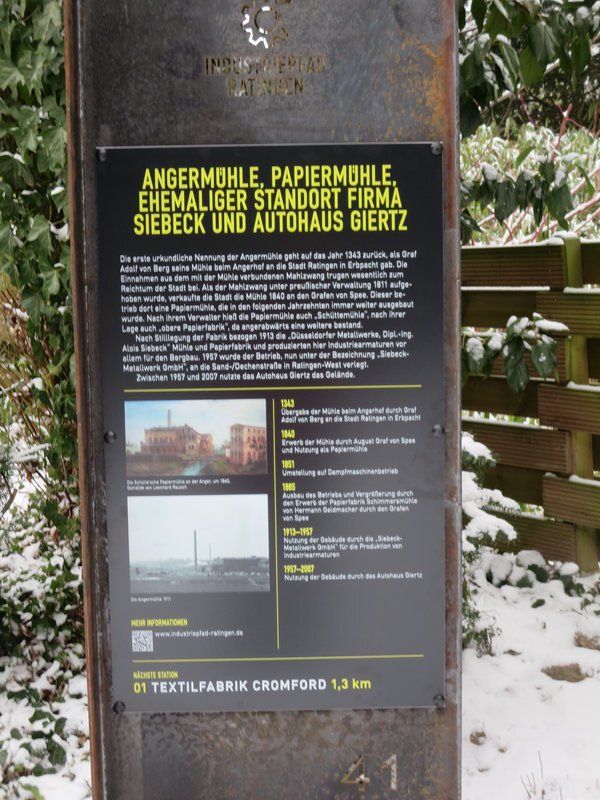 Die erste urkundliche Nennung der Angermühle geht auf das Jahr 1343 zurück, als Graf Adolf von Berg seine Mühle beim Angerhof an die Stadt Ratingen in Erbpacht gab.
